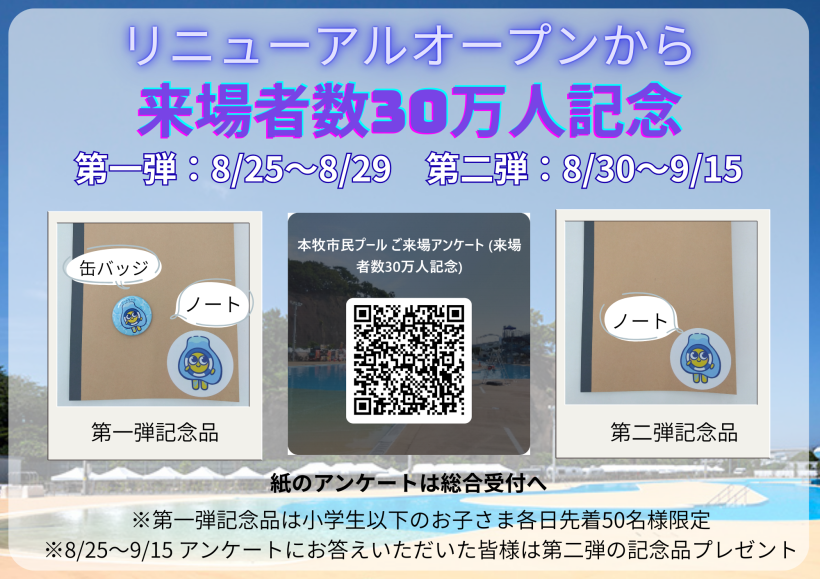 来場者30万人記念 アンケート実施のお知らせ